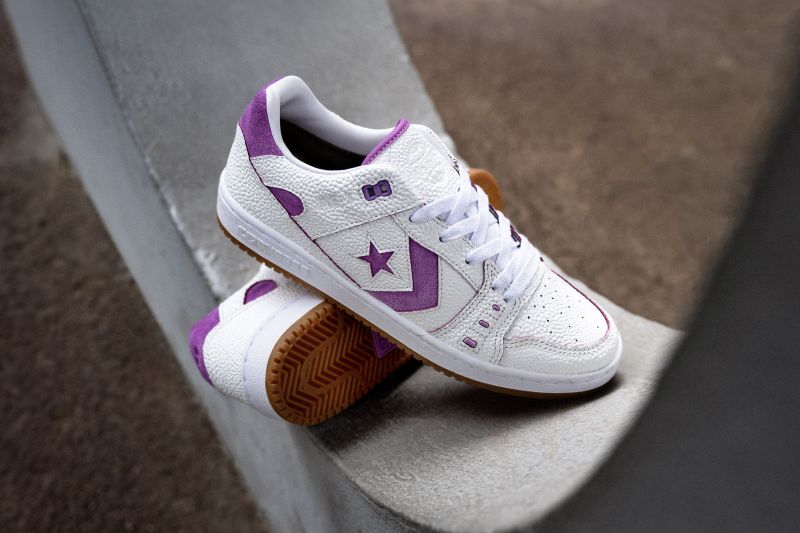 Sepatu Converse AS-1 Pro menonjol dengan kulit berwarna putih yang dihiasi pola aus dan logo Converse yang khas. Tonasi warna Fuchsia Glow pada sepatu ini menambah kesan segar dan dinamis.
