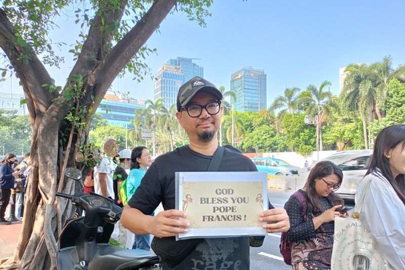 Mateus, yang mengenakan kaos dan topi hitam serta membawa poster bertuliskan “GOD BLESS YOU POPE FRANCIS!”, menyatakan harapannya agar kunjungan Paus Fransiskus ke Indonesia menjadi simbol toleransi dan perdamaian. “Semoga kedatangan Paus Fransiskus membawa kebaikan bagi Indonesia dan dunia, serta meningkatkan rasa damai di antara kita semua,” ujar Mateus.