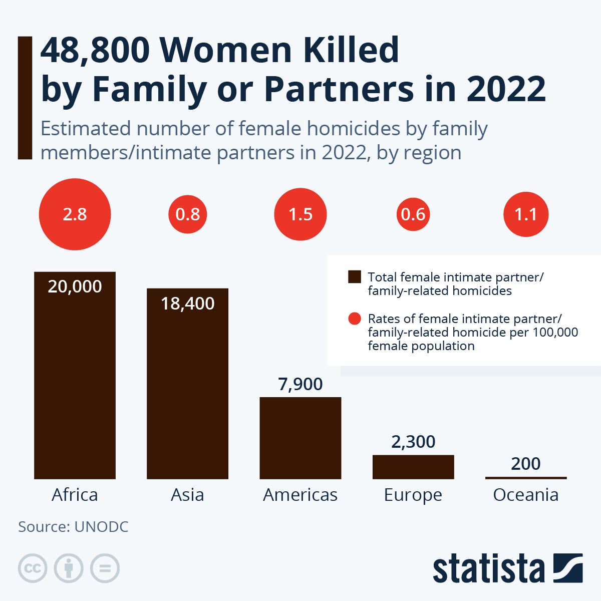 Pada tahun 2022, sekitar 48.800 perempuan dan anak perempuan diperkirakan tewas di tangan anggota keluarga atau pasangan intim mereka di seluruh dunia, menurut laporan terbaru dari PBB. Angka ini berarti lebih dari 133 perempuan atau anak perempuan dibunuh setiap hari oleh kerabat dekat mereka.