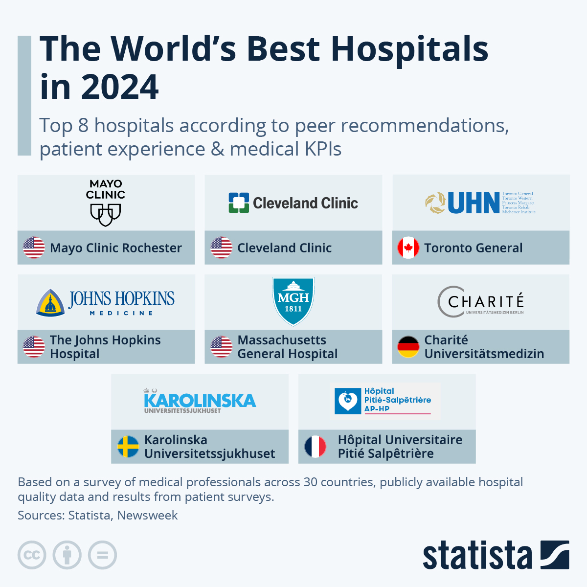 Pada tahun 2024, peringkat rumah sakit terbaik di dunia telah dirilis oleh Statista dan Newsweek, menyoroti institusi kesehatan yang memiliki standar pelayanan medis tertinggi. Peringkat ini berdasarkan survei terhadap puluhan ribu profesional medis dari berbagai negara serta data kinerja rumah sakit. Artikel ini akan membahas rumah sakit yang masuk dalam peringkat teratas, terutama dari Amerika Serikat, Eropa, serta metodologi yang digunakan untuk menentukan rumah sakit terbaik di dunia.