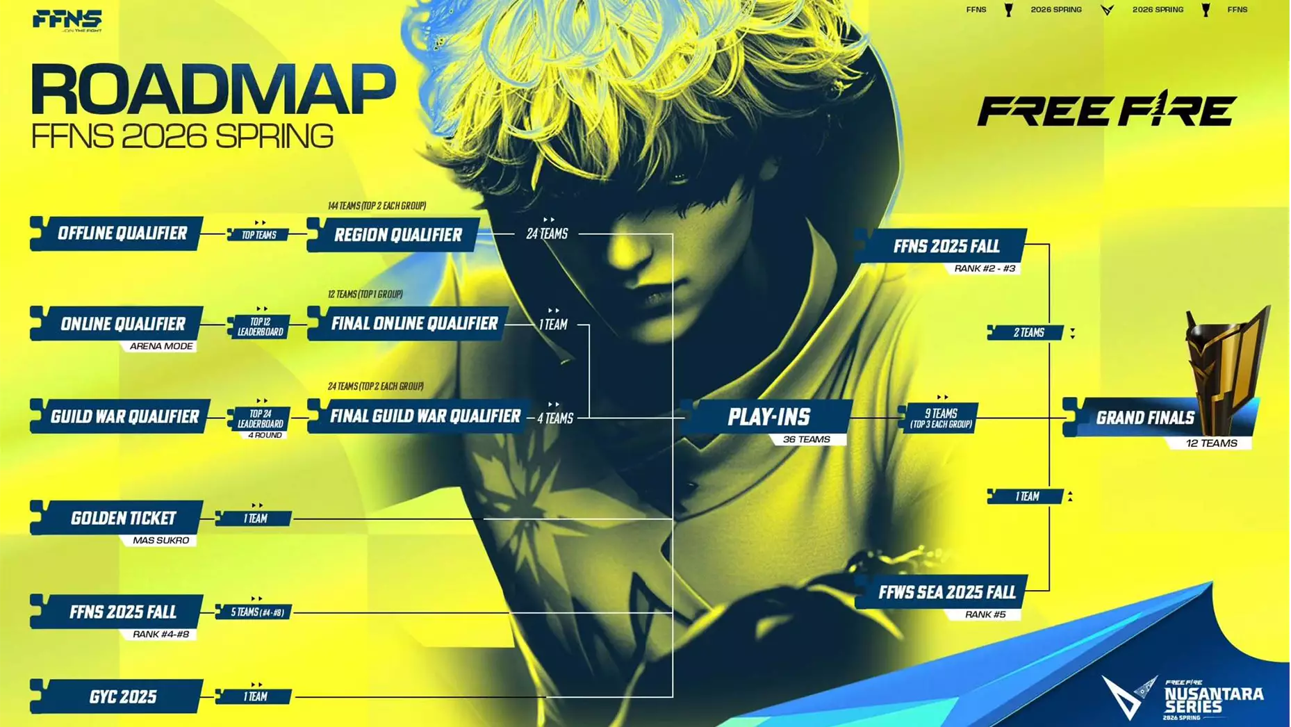 FFNS 2026 Spring menghadirkan format kompetisi yang membuka kesempatan bagi tim-tim komunitas di Indonesia untuk bersaing di scene esports Free Fire tingkat nasional. Tim yang berhasil lolos babak kualifikasi akan bersaing dengan tim profesional dan semi-profesional di babak Play-ins.